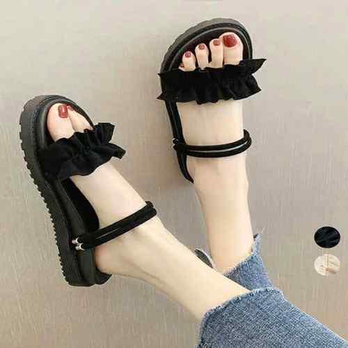 大人ガーリーラッフルサンダル ミュールサンダル 夏靴 可愛いコンフォートサンダル ストラップサンダル きれいめ疲れない靴 ビーチサンダル旅行 サマースリッパ夏海 韓国ファッション靴