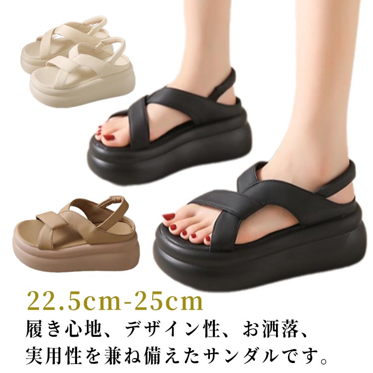 サンダル レディース ウェッジサンダル レザーサンダル おしゃれ 厚底サンダル 厚底 美脚 レザーシューズ 大人 女性 夏 履きやすい 滑り止め 脚長効果 安定感 可愛い キレイめ ストラップサンダル