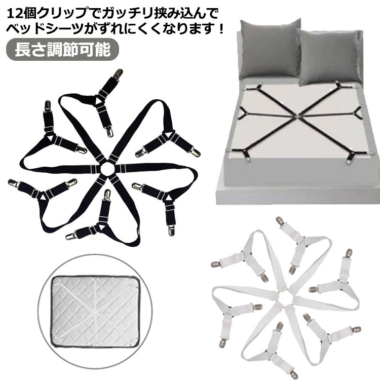 シーツ ずれ防止 クリップ ベッドシーツクリップ ゴムバンド 布団 マットレス 敷きパッド ベッドパッド ズレ防止 滑り止め ソファーカバー シーツクリップ 長さ調節可能 ベ 固定用