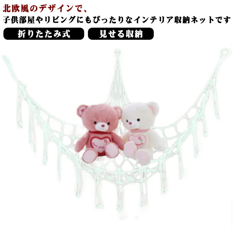 ぬいぐるみ収納 ハンモック 吊り下げラック 見せる収納 吊り下げネット 片付け ルームモック 省スペース 壁掛けネット 吊り下げ収納 折りたたみ式 北欧風 インテリア おしゃれ 寝室 ベ 子供部屋収納