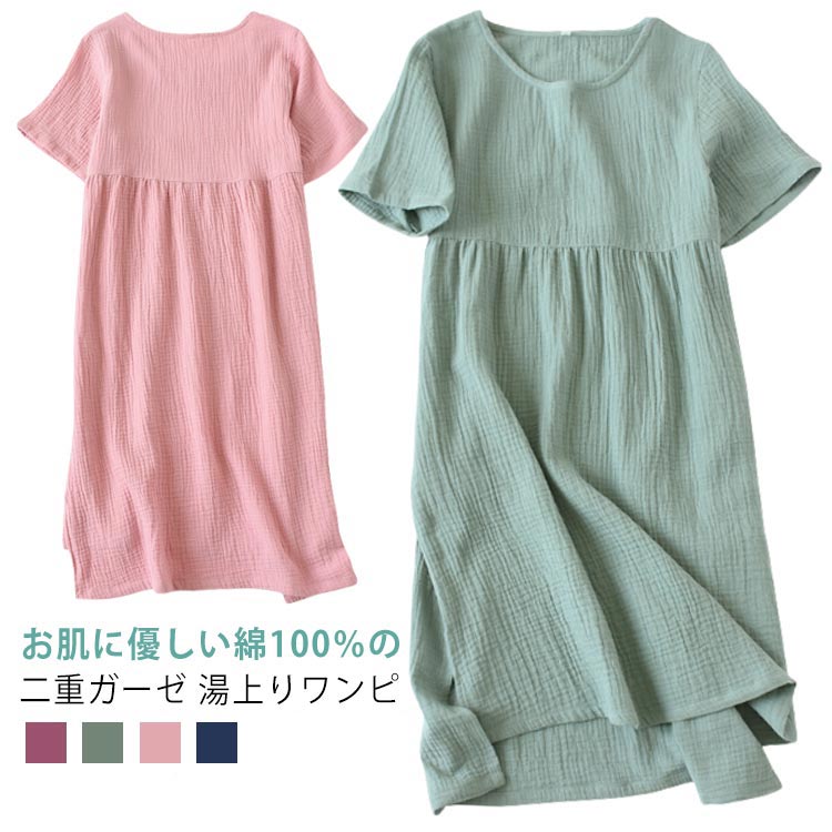半袖 湯上がり ガーゼワンピース 部屋着 ルームワンピース タオルワンピ 100% コットン ワンピース 室内着 タオルワンピース 着るタオル 綿 レディース 夏 夏用 ルームウェア 綿100