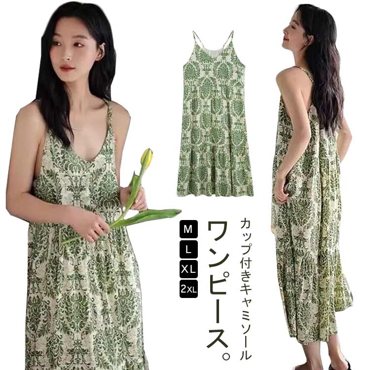 キャミワンピース レディース 夏 ルームウェア キャミソール ワンピース ロング カップ付き