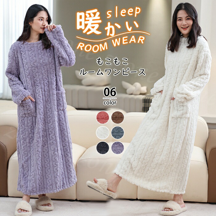 ルームワンピース ルームウェア レディース もこもこ パジャマ ワンピースパジャマ ポケット付き 部屋着 ワンピース 可愛い 厚手 長袖 着る毛布 リラックスウェア ゆったり 大きいサイズ ふ 寝巻き