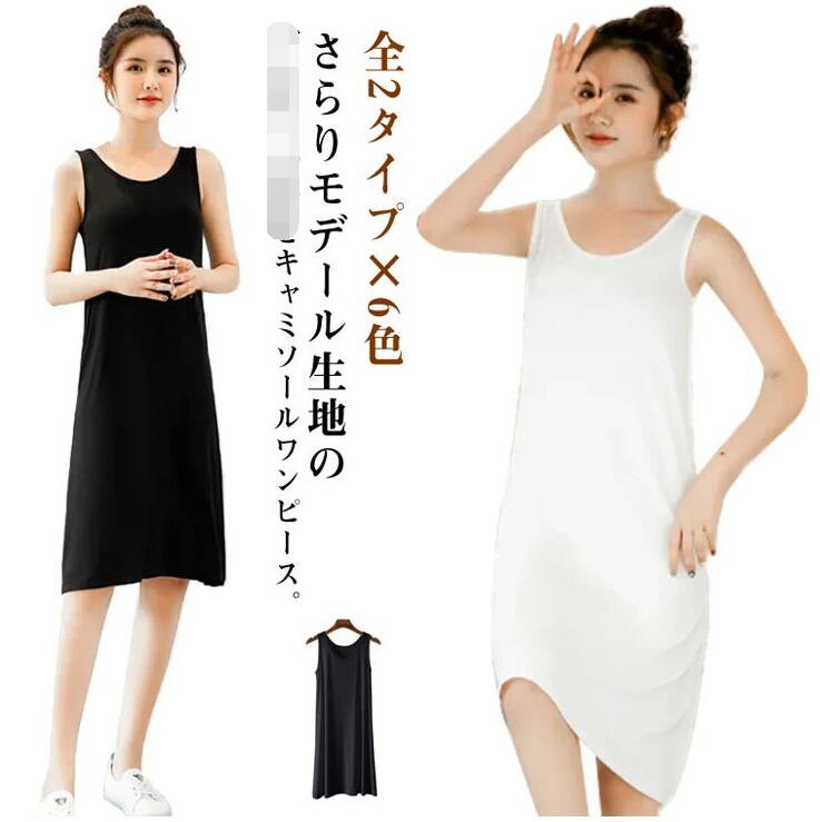 全2タイプ×6色 タンクワンピース レディース インナーキャミソール ワンピース スリップ ペチコート 透け防止 インナー キャミソール ペチワンピ ナイト ルームウェア タイト 部屋着