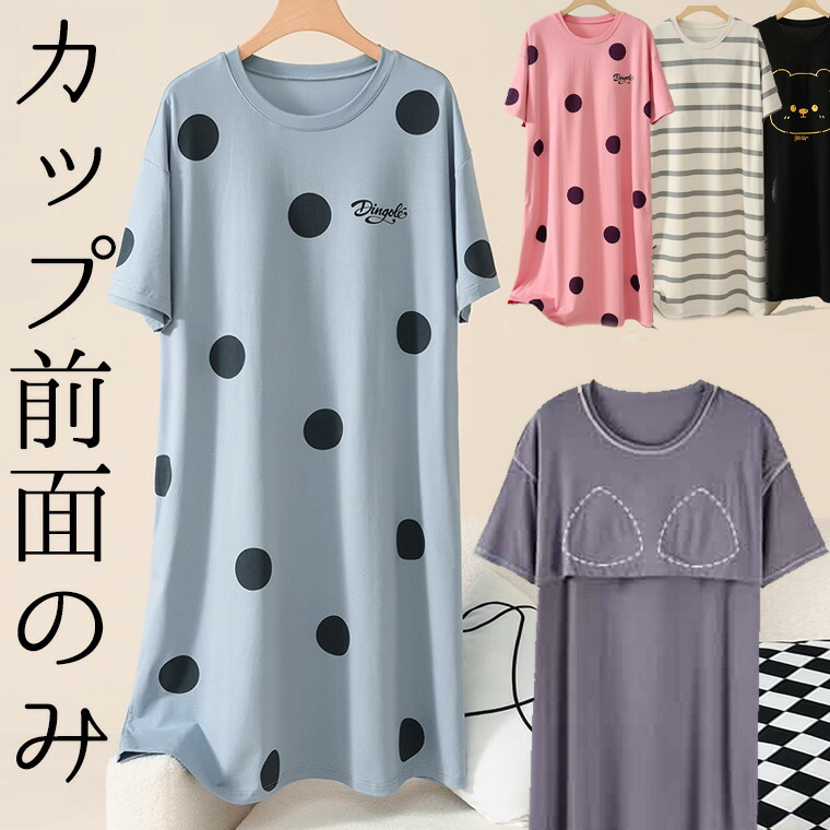 5XLまで 前だけカップ付 やわらかもっちり肌が気持ちいい 半袖スリップ 締め付けない アンダーフリー ゴムなし アンダーゴムなし ベビードール ペチコート ミニワンピ インナー パジャマ ネグリジェ