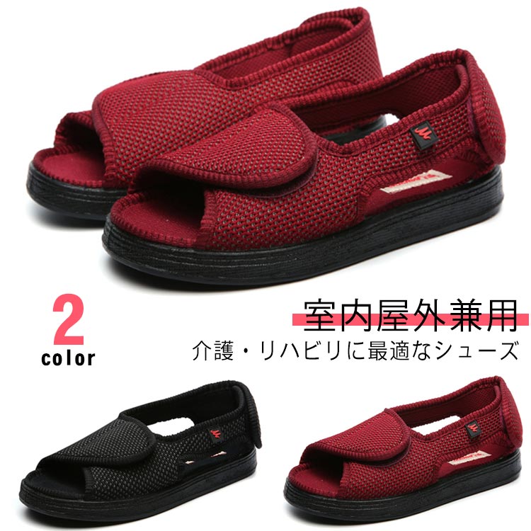 介護 夏 女性用 甲高 婦人用 靴 レディース 両足 介護シューズ おしゃれ 介護靴 リハビリシューズ 幅広 外反母趾 転倒予防シューズ つま先なし 入院 腰痛 高齢者 サポート 痛風靴