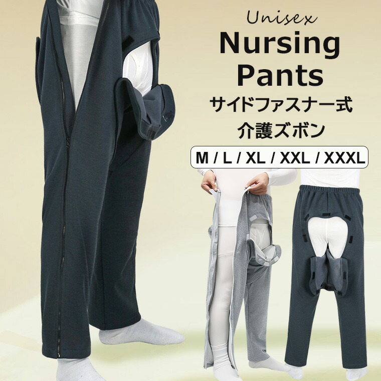 脱ぎ履きが簡単 サイドファスナー ジップ 介護 入院 春夏 寝たきり 着脱 簡単 骨折 患者 ガウン 全開 パンツ ルームウェア 前開き ズボン