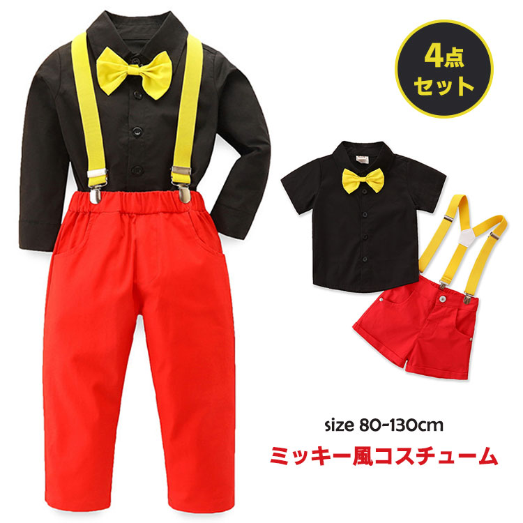 ハロウィン クリスマス コスプレ衣装 ミッキー コスプレ コスチューム セットアップ 4点セット キッズ 男の子 半袖 長袖 シャツ フォーマルスーツ 子供服 記念写真 パーティー イベント おでかけ