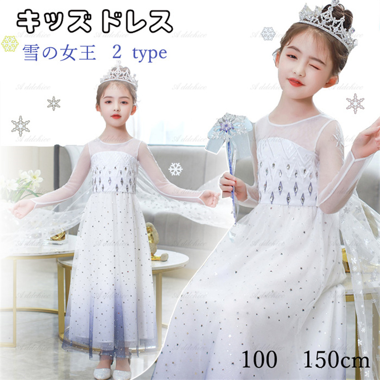 女の子の憧れプリンセスドレス エルサ ドレス 女王 お姫様ワンピース ハロウィンやお誕生日プレゼント ドレス記念写真 マント付き 取り外し可能 2 お誕生日【当店オススメ】
