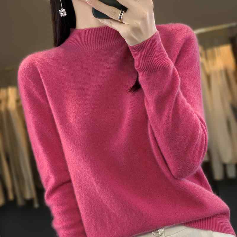 ニット ハイネック トップス セーター 普段使い 長袖 無地 ウール 羊毛 プルオーバー ゆったり リラックスフィット 快適 大人カジュアル デイリーユース 大きいサイズ オフィス レディース 秋冬