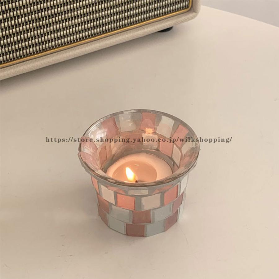 モザイクガラス キャンドルホルダー アート ホワイト ピンク キャンドルスタンド 韓国 北欧 おしゃれ アンティーク かわいい デザイン