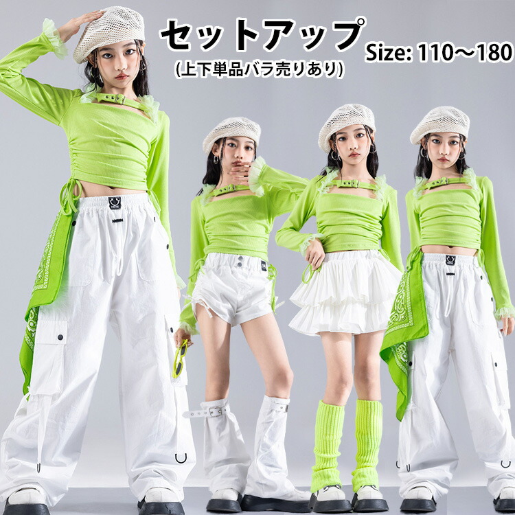 キッズダンス衣装 セットアップ ショートトップス キッズ ダンス 衣装 腰巻風 フットカバー バラ売り 単品販売 長袖 Tシャツ スカート バギーパンツ 長ズボン ヒップ ショートパンツ