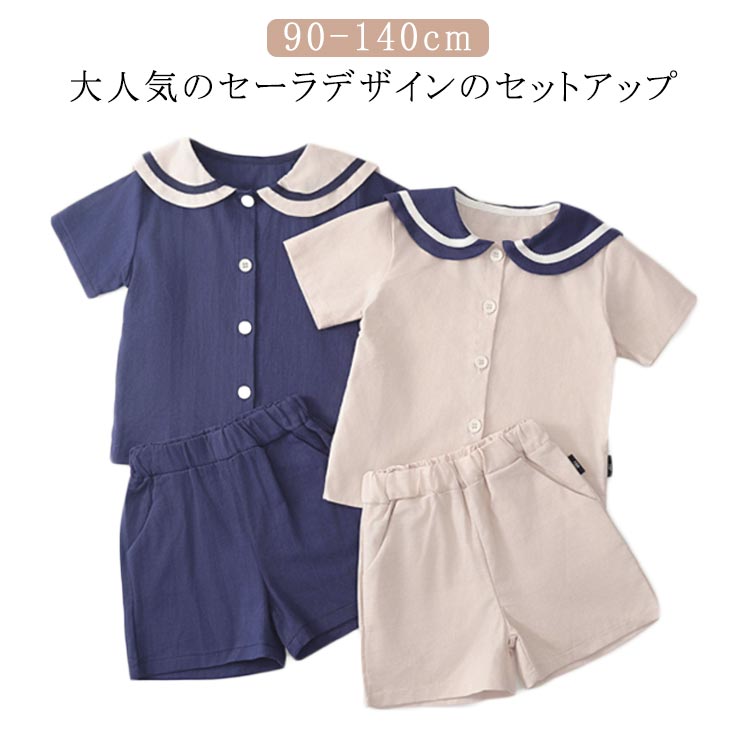 セーラー服 子供服 セットアップ 半袖 半ズボン 短パン キッズ 制服風 男の子 女の子 双子 海軍風 子供スーツ マリン襟 フォーマル 夏スーツ 通学スーツ 可愛い ベビー服 上下セット カジュアル