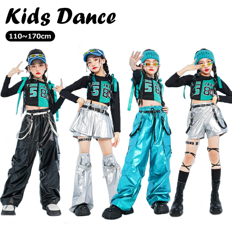 キッズ ダンス衣装 パンツセット シルバー セットアップイベント かっこいい 女の子 韓国 ヒップホップ HIPHOP K-POP ジャズ ストリート ダンス ダンスウェア 演出服 発表会 団 練習着
