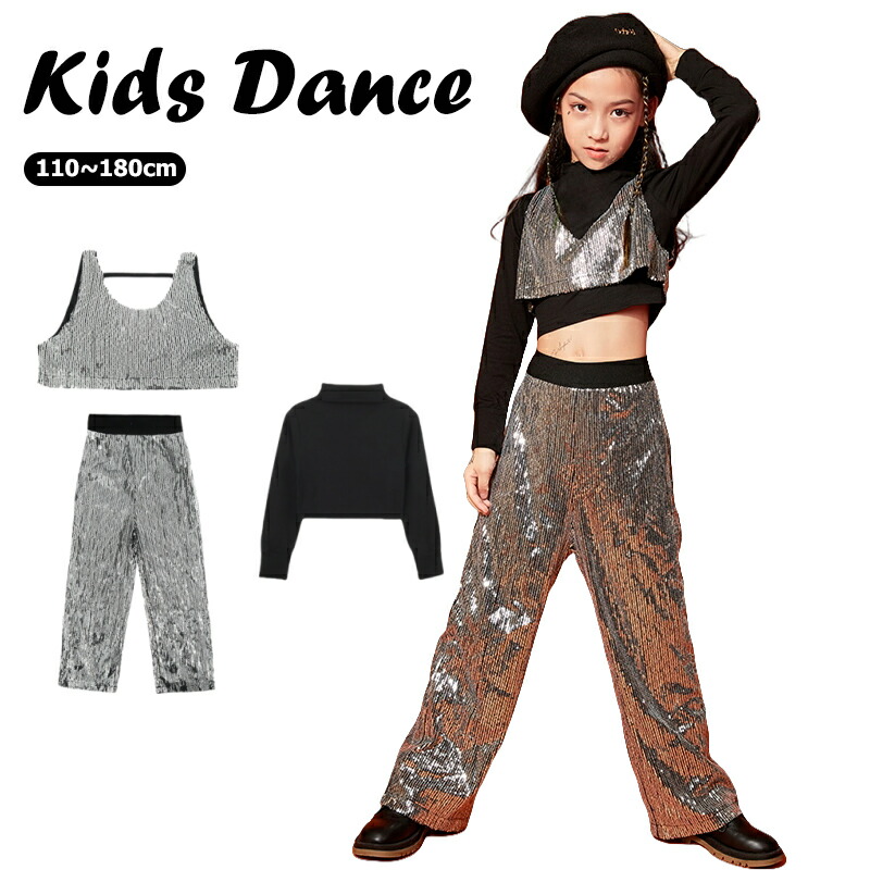 キッズ ダンス衣装 スパンコール キラキラ セットアップイベント かっこいい 女の子 韓国 ヒップホップ HIPHOP K-POP ジャズ ストリート ダンス ダンスウェア 演出服 発表会 団 練習着