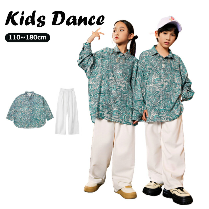 キッズ ダンス衣装 ゆったり シャツ ペイズリー イベント トップス パンツ かっこいい 女の子 男の子 韓国 ヒップホップ HIPHOP K-POP ジャズ ダンス ダンスウェア 練習着 ストリート