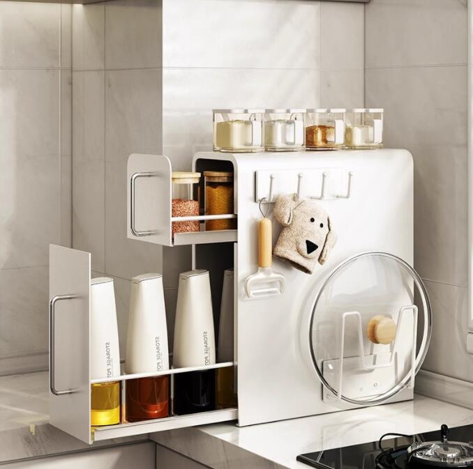 隠せる調味料ラック コップラック 調味料置き 隠せる隙間 キッチンサイド スパイスラック 調味料引き出し コンロサイド 大容量 キッチン収納 キッチンストッカー 省スペース 単層 隙間収納
