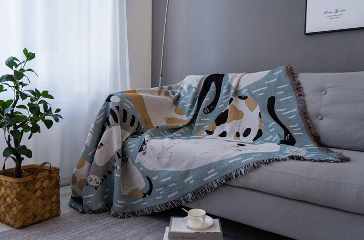 猫ちゃんマルチカバーソファーカバーマット絨毯コットン綿フリンジカラフルカーペットブランケットアンティーク韓国雑貨インテリアおしゃれかわいい布大きい130cm×160cm洗える長方形