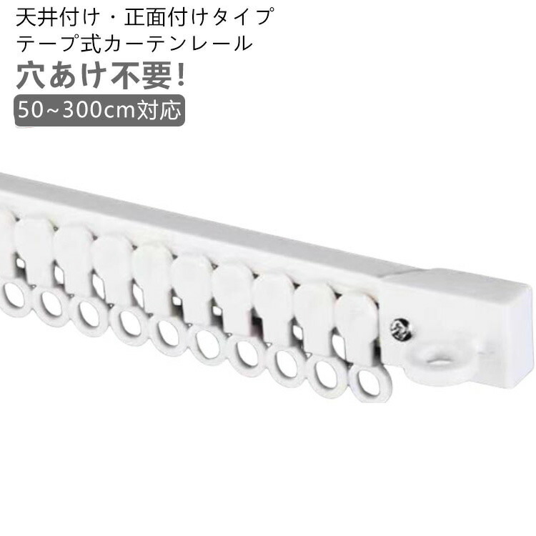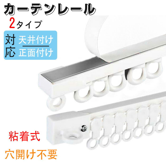 カーテンレール 粘着式 穴開け不要 天井付け 正面付け 貼り付け 取付簡単 バスルーム ベッドルーム リビングルーム オーダーサイズ可能
