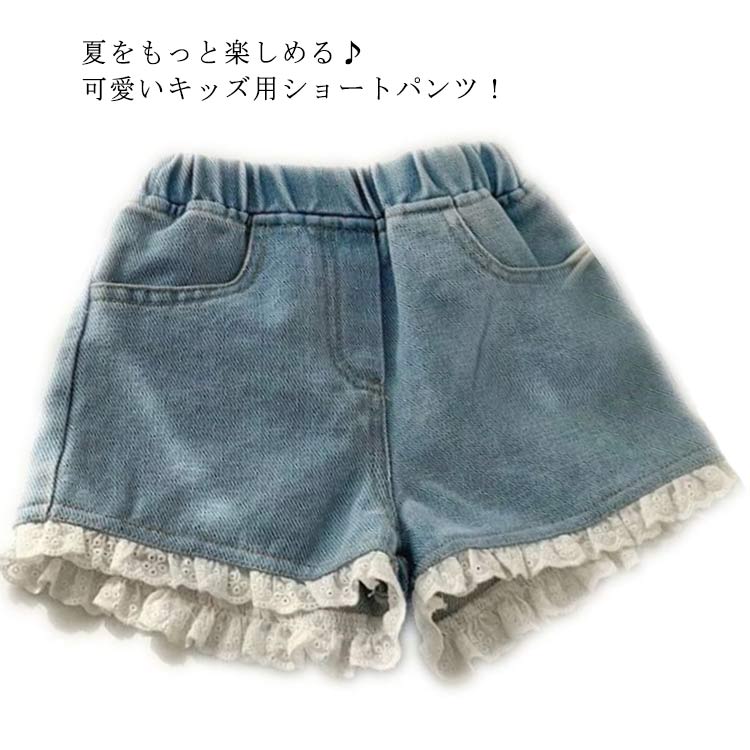 ショートパンツ ガールズ 半ズボン デニムパンツ 女児 ボトムス レース裾 キッズ 子供服 ウエストゴム 夏物 薄手 柔らかい ゆったり 通園 通学 動きやすい