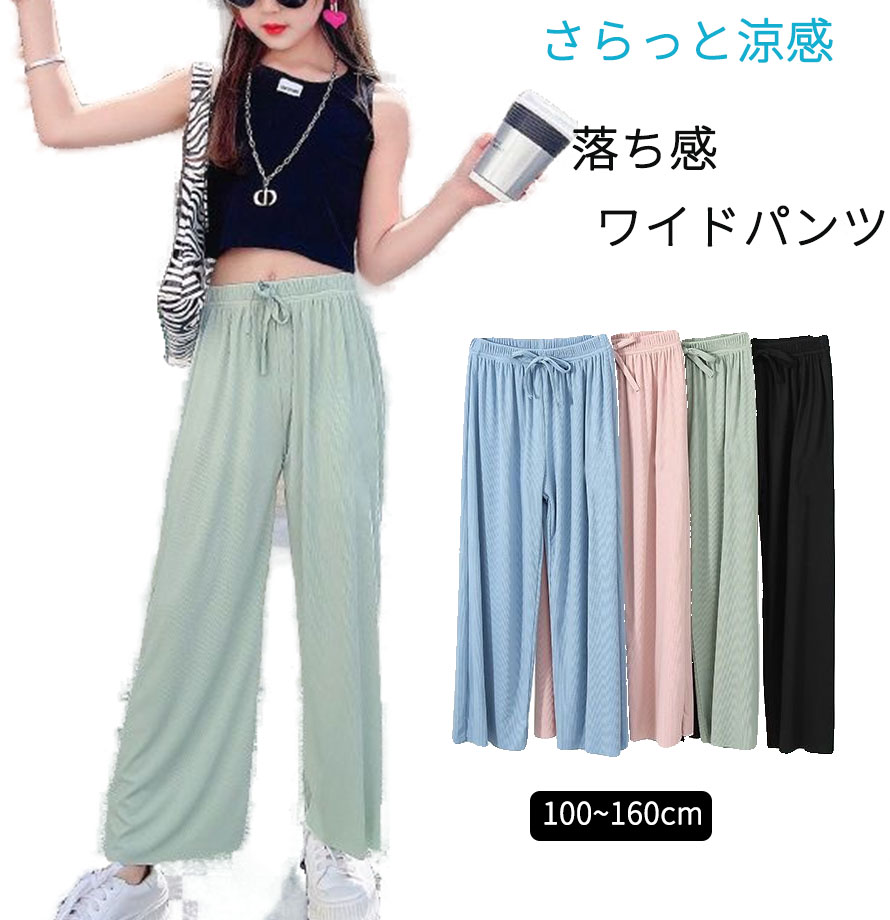 ワイドパンツ 女の子 おしゃれ 可愛い キッズ リブワイドパンツパンツ 子供用 イージーパンツ ロングパンツ ストレッチ ひんやり 子ども服 ジュニア