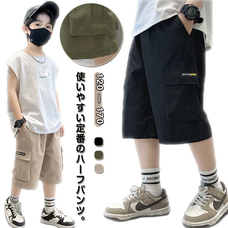 カーゴパンツ 七分丈 パンツ 男の子 キッズ 子供服 夏 薄手 半ズボン ウエストゴム 通学 ボトムス ジュニア 無地 ハーフパンツ 通園 幼稚園 小学生 カジュアル ダンス
