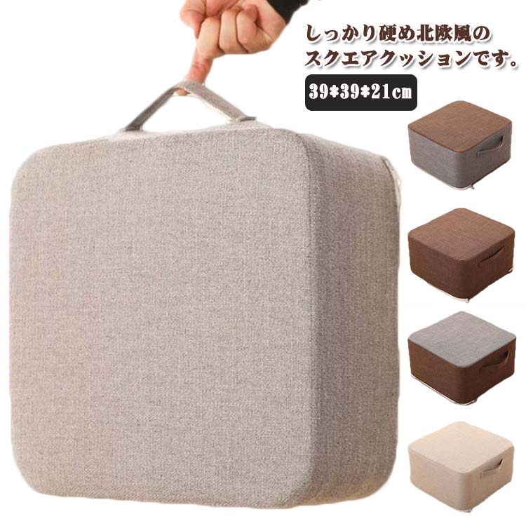 綿麻 フロアクッション おしゃれ 北欧 高さ21cm 四角 持ち手付き 椅子 硬め 足置き 足置き台 クッション スクエアクッション 高反発 インテリア 子供 座布団 リビング