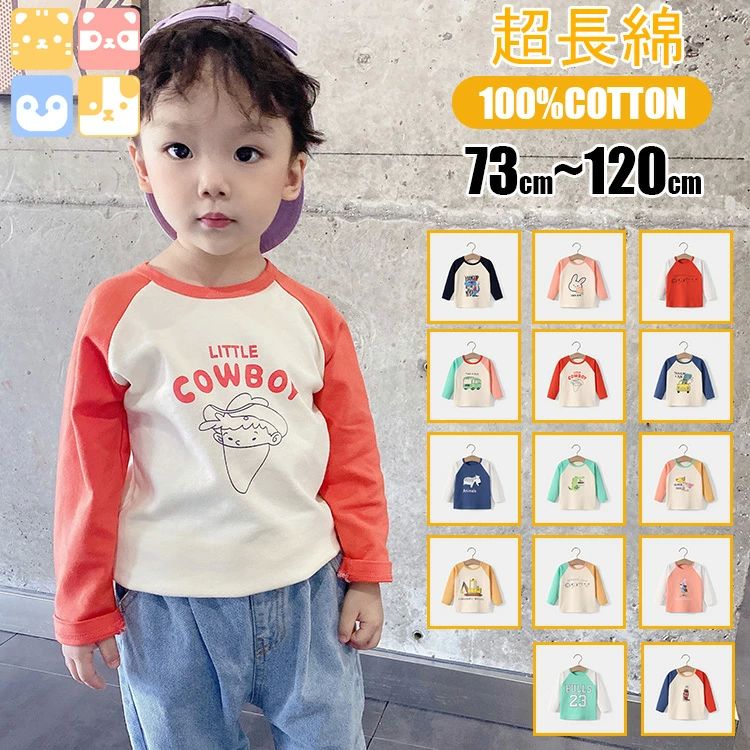 子供服 キッズ 73-120cm ベビー服 女の子 男の子 女児 男児 子供 長袖 可愛い 長袖Tシャツ コットン 綿100% 超長綿 ロンT ジュニア 吸湿性 放湿性 73 90 100 1 80