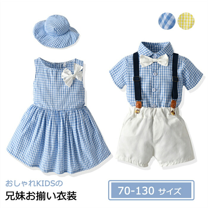 兄妹お揃い 子供服 おそろいベビー服 キッズ 上下セット スーツ ワンピース 女の子 男の子 赤ちゃん 男女の双子 チェック柄 姉弟 コーデ ペア かわいい 衣装 プリンセス 保育園 幼 コスチューム