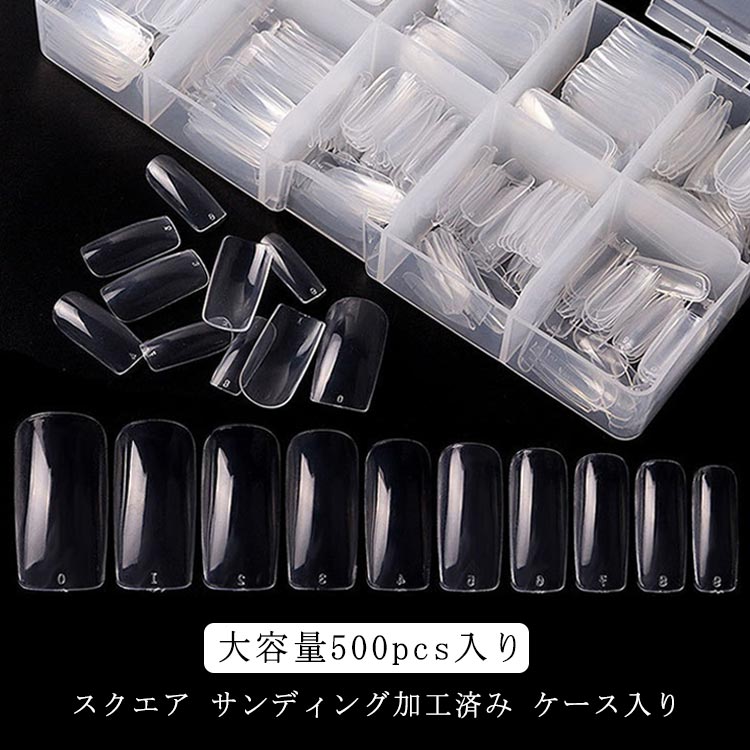 ネイルチップ スクエア 超薄 ラウンド 500枚 ショート サンディング加工済み 付け爪 ケース入り