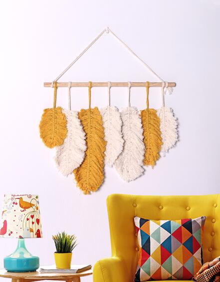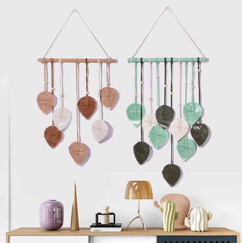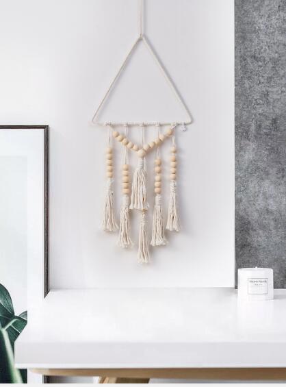 壁掛けインテリアデザインタペストリーノルディックボヘミアンホワイトコットン布ロープ木木材ウッド北欧韓国おしゃれかわいい編み込み雑貨ディスプレイカフェ飾りインテリアレトロシンプル