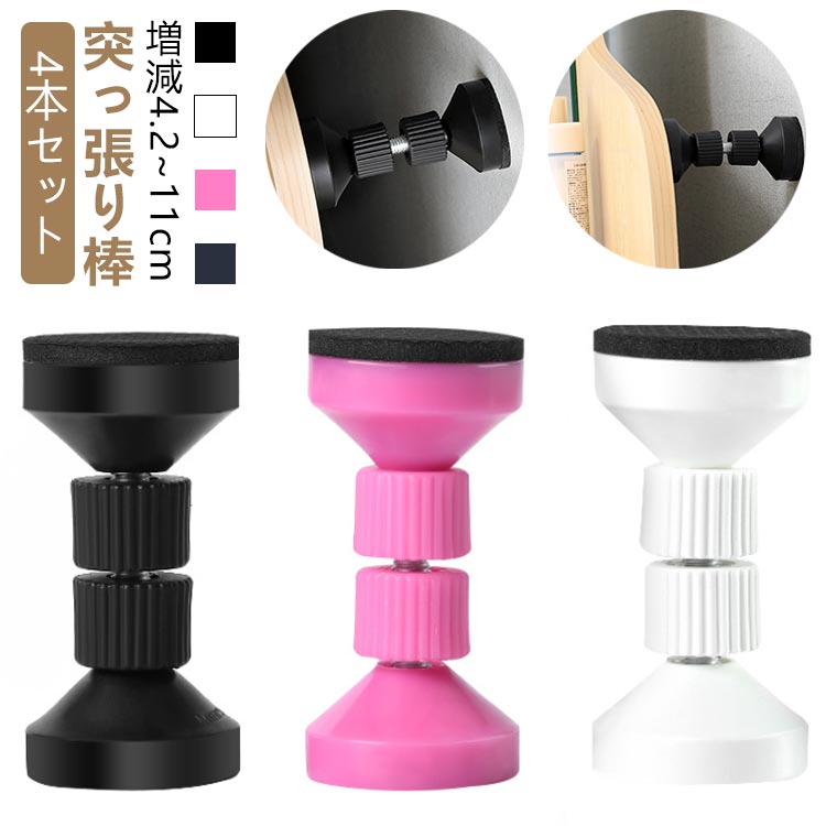 高さ4.2~11cm 家具転倒防止 突っ張り棒 取付簡単 本棚 伸縮 両面テープ付き 4本セット 冷蔵庫 転倒防止 防災グッズ 地震対策 保護パッド 狭い隙間用 タンス テーブル 食器棚 耐震ポール