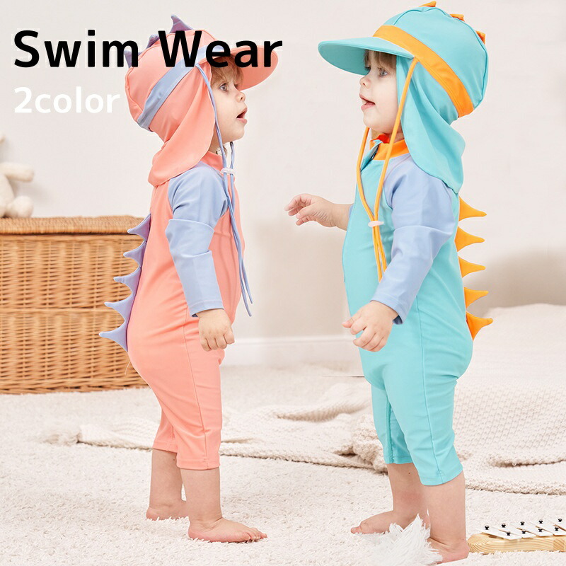 ラッシュガード 水着 ベビーキッズ キャップ付き 子供用 怪獣 キッズ ピンク ブルースイムウェア プール ビーチ 海 レジャー アウトドア 川遊び