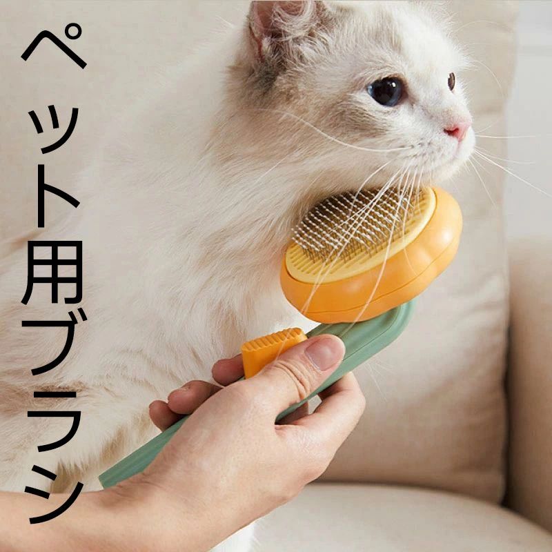 換毛期対策 静電気防止 短毛長毛兼用 ペット用ブラシ 犬 猫 ワンプッシュ ペットブラシ カボチャの型ブラシ毛取り