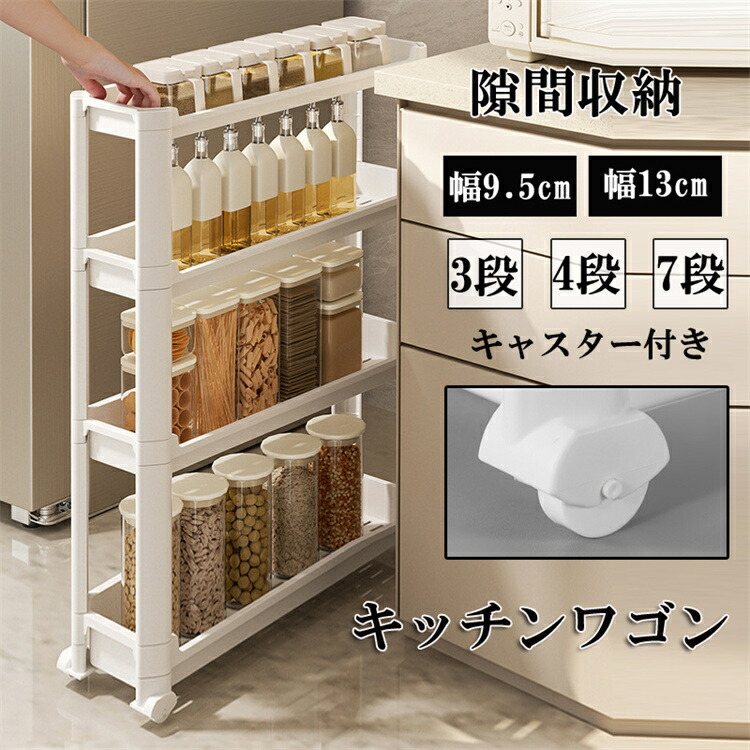 クーポンで1628円 隙間ラック キッチンワゴン スリム 隙間収納 幅9.5cm 幅13cm 収納ラック 3段 4段 7段 棚 収納 細い棚 キャスター付き ローリングラック おしゃれ 調 収納カート