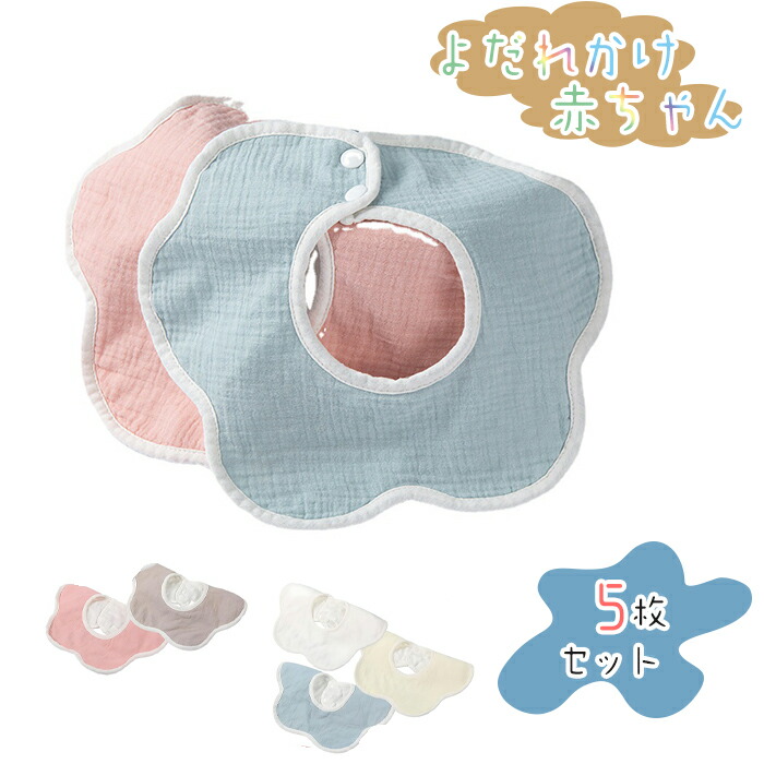 よだれかけ 赤ちゃん スタイ 5枚セット 4層構造 二重ガーゼ 綿 花びら型 スナップボタン 360度回転 柔らか素材 防水シート入り 通気性 食事用スタイ保育園用 出産のお祝いギフト マル 吸水速乾