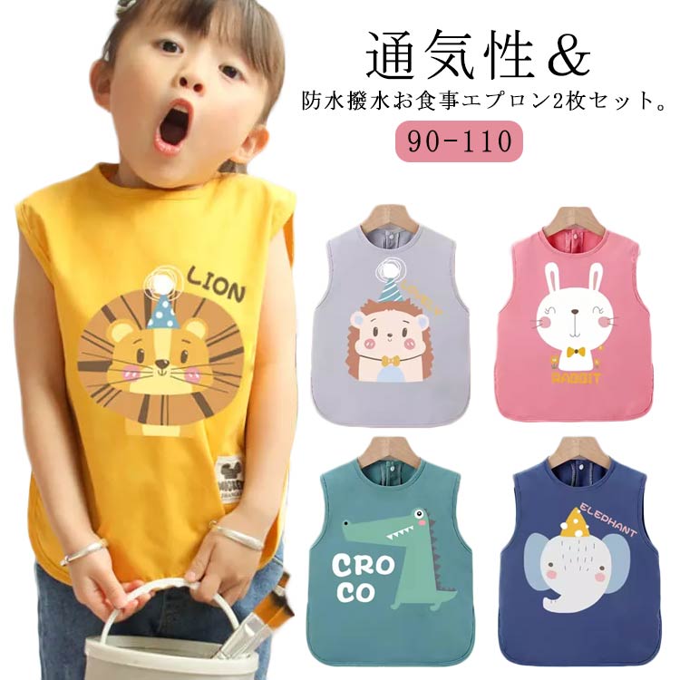 お食事エプロン 2枚セット スモック幼稚園 撥水加工 汚れ防止 入園準備 保育園 幼稚園 ロングスモック 袖なしスモック 子供服