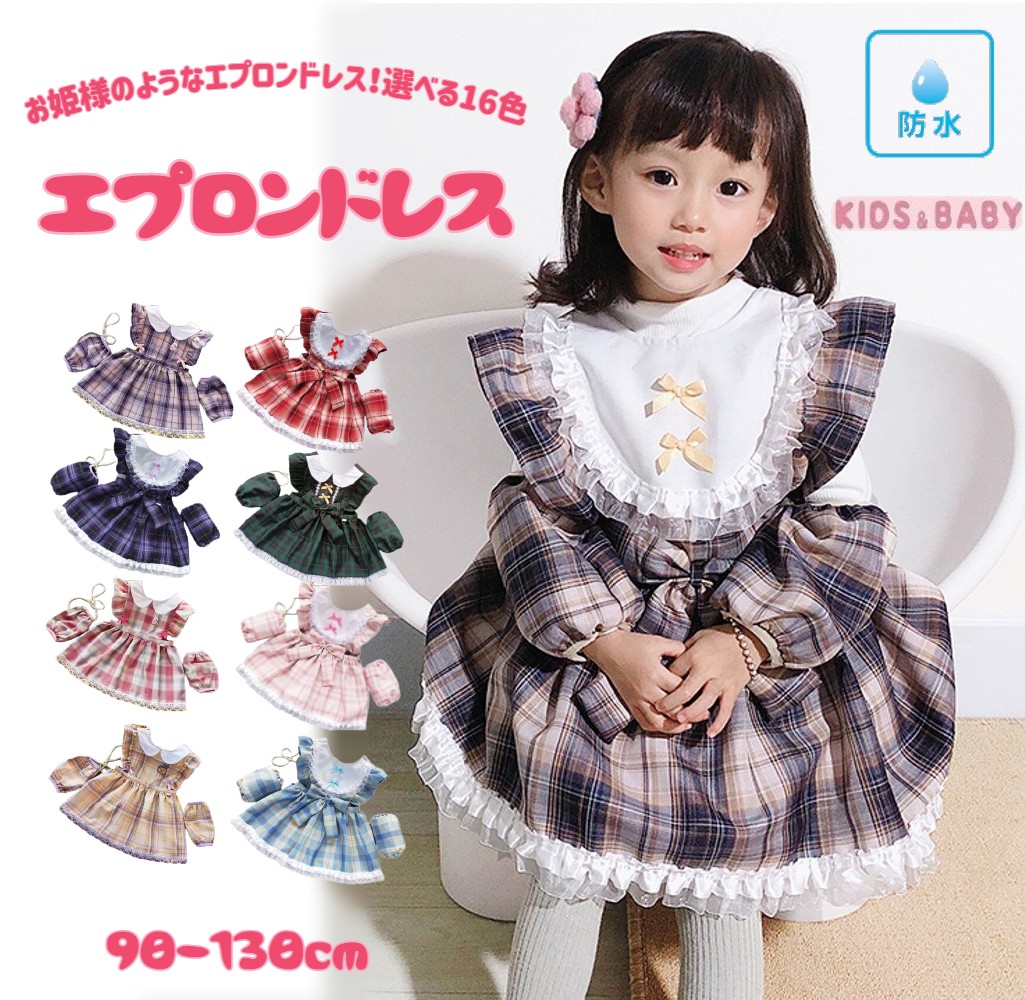 着たまま外出できちゃう お姫様のような エプロンドレス ベビー キッズ ワンピース風 防水 アームカバー エプロン リボン フリル 赤ちゃん 子供 女の子 ラウンドネック 可愛い お絵描き 砂 襟付き