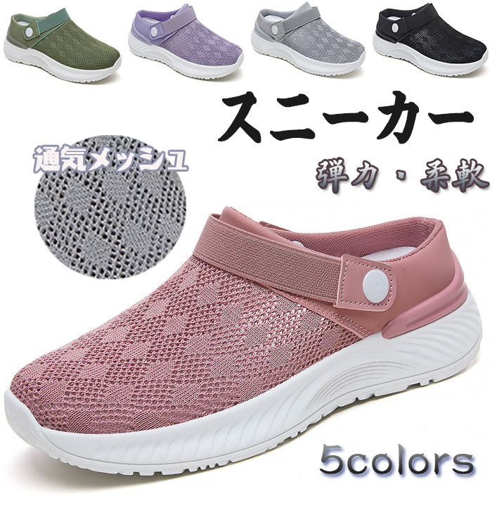 レディースシューズ ナースシューズ 黒 介護シューズ 婦人靴 幅広 軽量 高齢者 靴 スリッポン スニーカー メッシュ 看護師 柔軟性 レディース靴 ブラック
