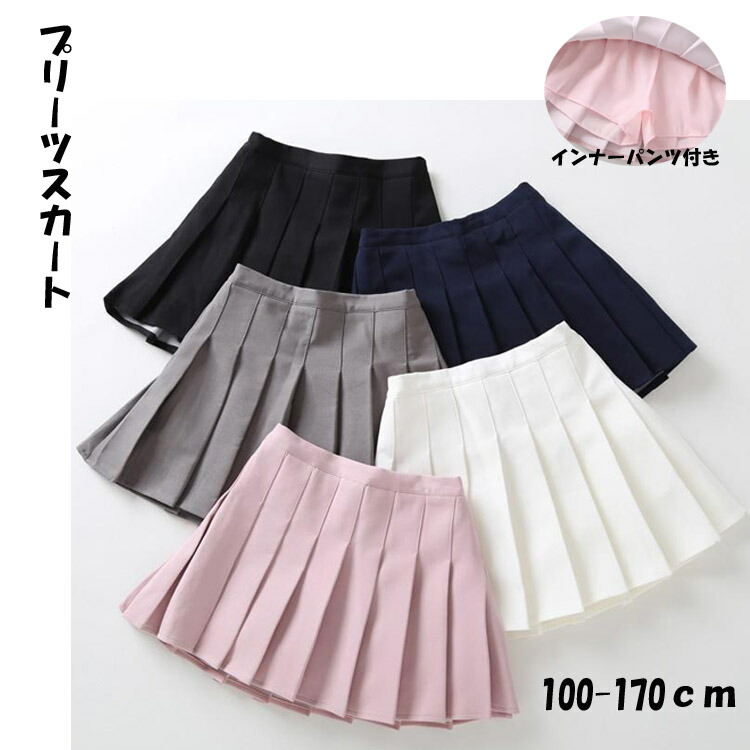 キッズ 女の子 スカート プリーツスカート キュロット 黒 春秋 冬 インナーパンツ付き ウエストゴム 子供服 かわいい ジュニア ガールズ ボトムス こども服 幼稚園 中学生 女児 110 小学生