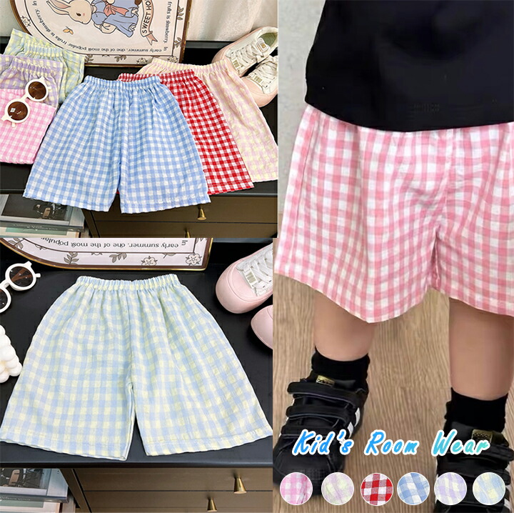 キッズルームパンツ ギンガムチェック ルームウェア ショートパンツ パンツ レディース 部屋着 パジャマ ゆったり