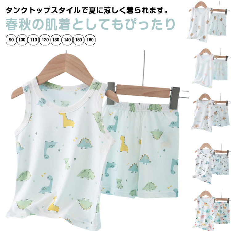 90~160 タンクトップパジャマ上下セット キッズ 綿 涼しい 蒸れない
