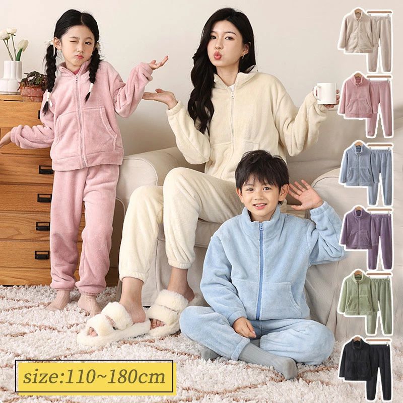 パジャマ キッズ 親子 女の子 男の子 冬用 ルームウェア もこもこ 上下セット フランネル 子供パジャマ セットアップ 暖かい 長袖 ジュニア かわいい おしゃれ 寝巻き 部屋着