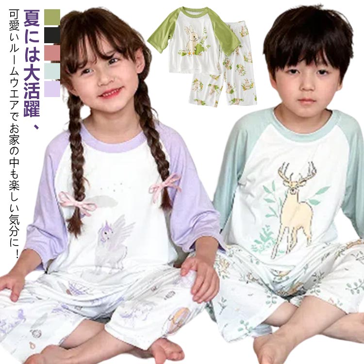 パジャマ キッズ 春 夏 薄手 七分袖 ルームウェア 寝巻き 部屋着 男の子 女の子 子供パジャマ