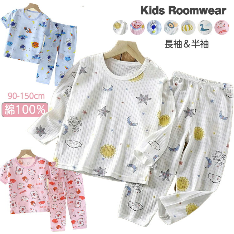 キッズ ルームウェア 上下セット 子ども 春 夏 薄手 涼しい 綿 コットン ゆったり 部屋着 女の子 男の子 女児 ベビー パジャマ ナイトウェア かわいい 90 1 長袖