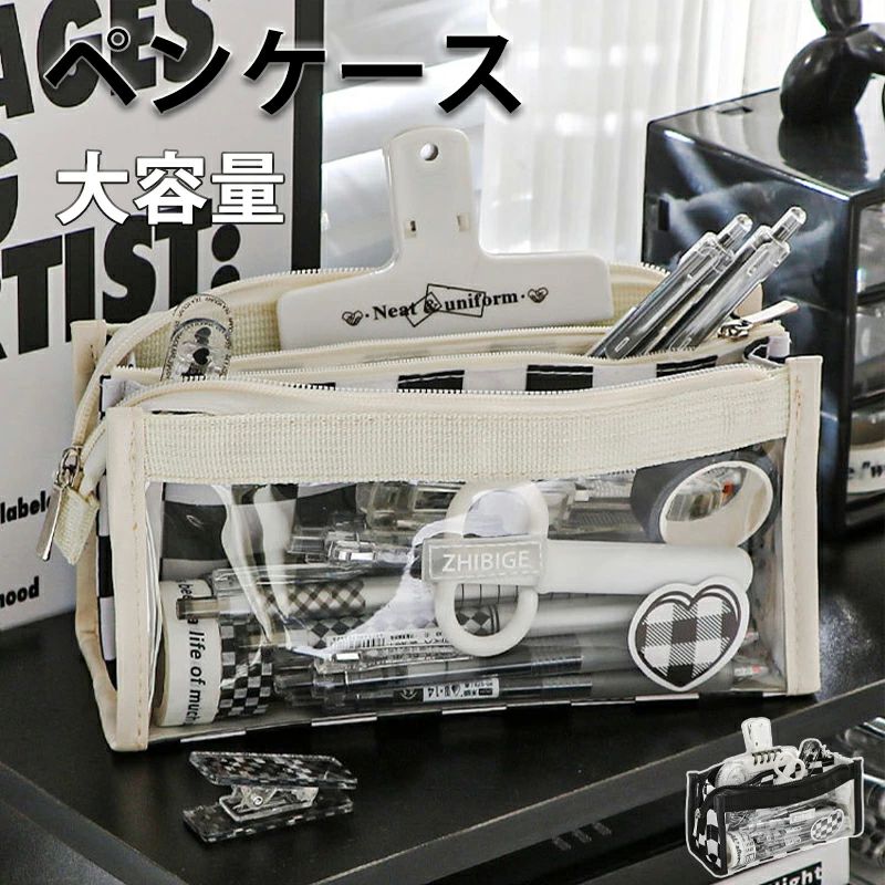 2枚セット ふでばこ 文具 おしゃれ ツールペンケース 透明 ペンケース 男の子 多機能ぺんけーす ポーチ かわいい 筆箱 女の子 小学生 中学生 高校生 大容量
