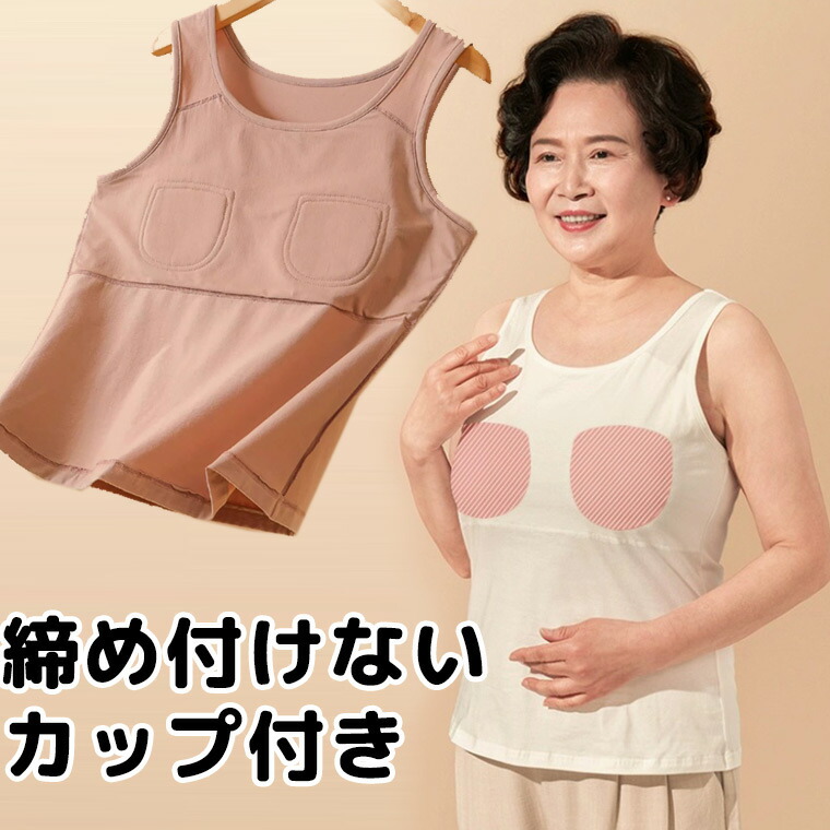 締め付けない ズレない アウターで着れる 40代 50代 パット付 くすみカラー タンクトップ アンダーフリー ゴムなし ブラトップ 前のみ パッドのみ 固定 カップ付き インナー 袖な ルームウェア