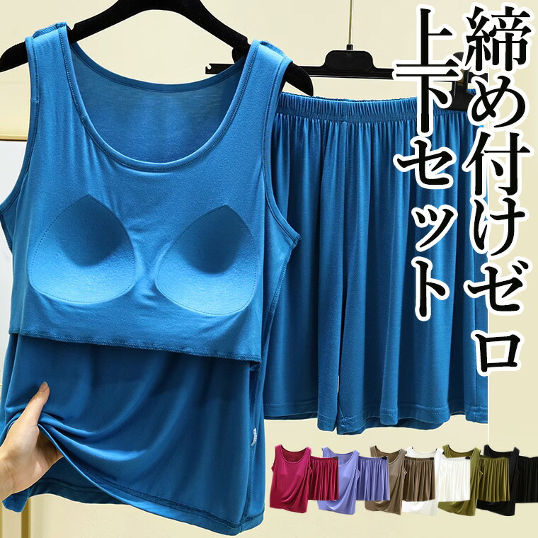M-2XLサイズ 締め付けゼロ 上下セット 前だけカップでリラックス かわいいルームウェア パジャマ 締め付けない 夏 可愛い 2点 タンクトップ レディース ショートパンツ ブラトップ ハー 部屋着
