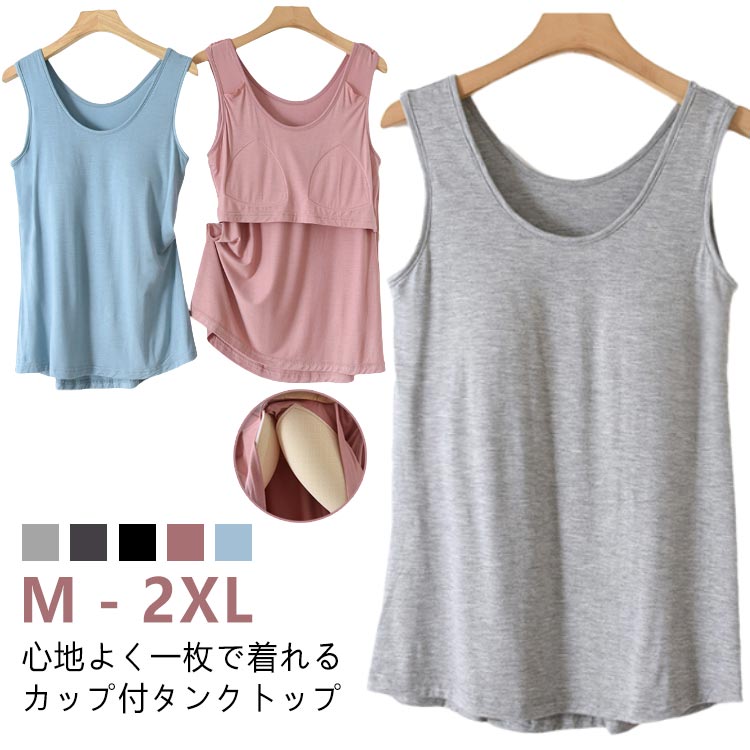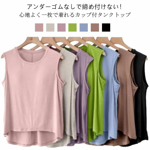 ブラ付き カップ付き 無地 アンダーゴムなし 部屋着 タンクトップ 締め付けない ルームウェア ゴムなし 背中 袖なし ゴム無し 袖無し ゆったり 夏 カップ付 大きいサイズ ナイトウェア トップス