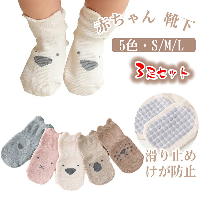 3足セット 赤ちゃん 靴下滑り止め付き ベビー ソックス コットン 出産祝い 靴下 プレゼント 贈り物 ルーム靴下 キッズ ソックス 転倒防止